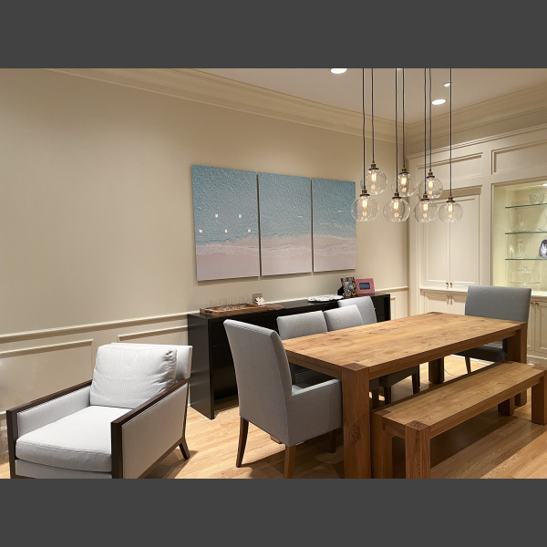 Serenity Now 48×90 triptych on aluminum – dining room