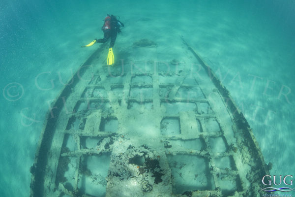 The next wreck proved far less logistically challenging, partially because of planning, and partially because of luck. The planning part involved waiting for weeks, anxiously watching the surf report and weather forecasts for a day that I knew would create the best chances of optimal conditions. The luck part – awwww, who my kidding?, I don’t believe in luck!  The more I plan, the luckier I get!  But sure enough, conditions and visibility at the Half Moon in Miami were 10 times better than at the previous site.  The wreck was far more interesting than the Georges, with about 15 or 20% of the structure above sand, and at least 20 times the marine life living on and around it.   Schools of fish swarmed over the top, and sponges clung to every exposed part. Visibility was a healthy 30 feet, more than I would’ve expected, but of course, there is that planning part, and we did ensure the dive would take place on an incoming high tide, which brought the clear ocean water into the bay for a limited time.  Struck amidships buy a larger vessel in 1930, it sank during a storm in just 10′ of water.