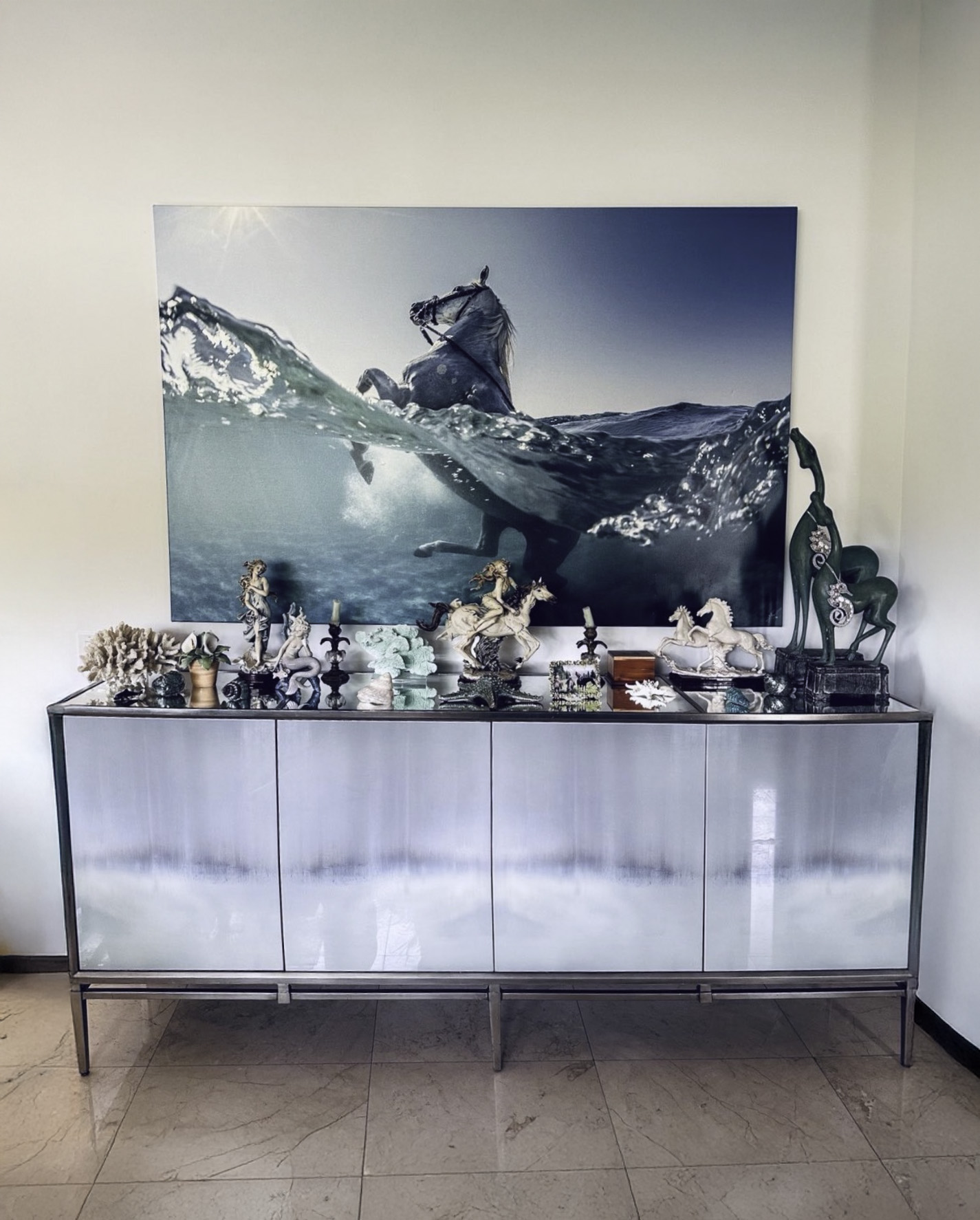 For printing, all three horse images are best kept in or near their original 3:2 ratios (horizontal for Leap and Salty Kisses, and vertical for The Long Face). The horizontal images are available in huge art sizes up to 250″ wide, while The Long Face is available up to 150″ tall. You can purchase this luxury wall art online in our standard sizes, but if you’d like to discuss a custom crop or size, please contact one of our design consultants at the art gallery.